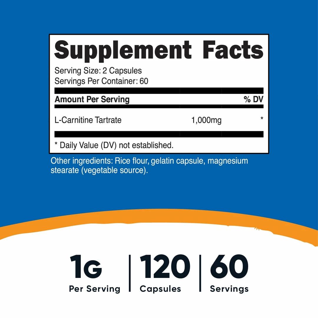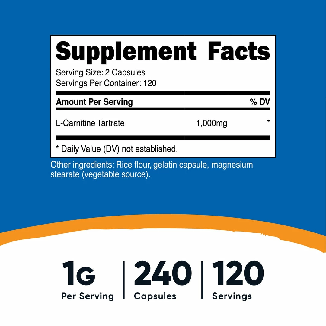 - 240 Capules or 120 Capsules, Each With 500mg of L-Carnitine Tartrate