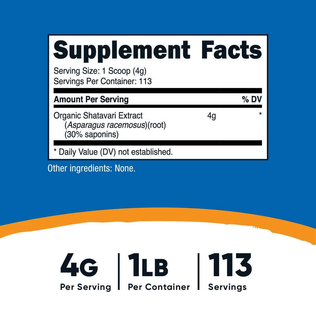 - 1 LB of Organic Shatavari Powder Per Bottle