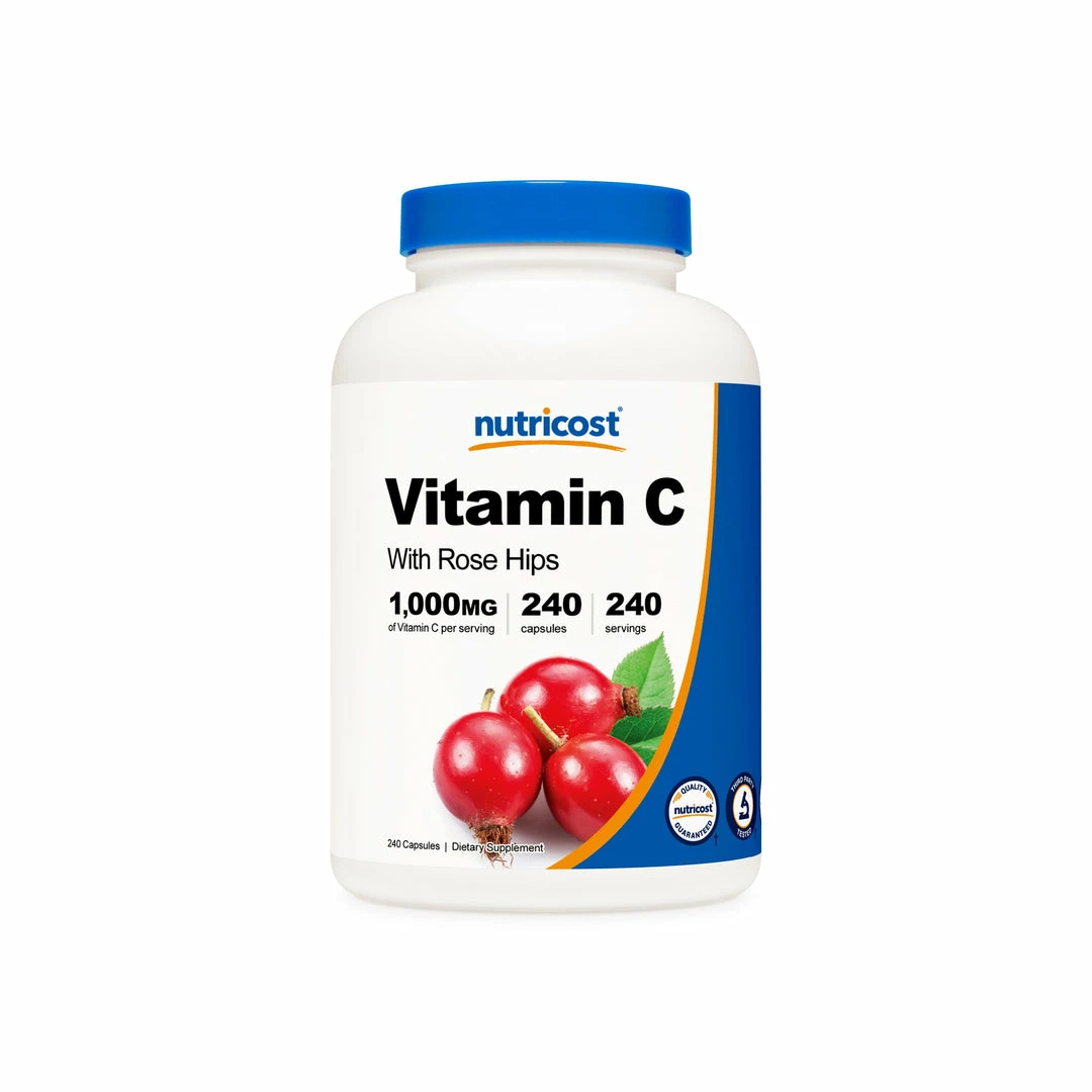 Nutricost Vitamin C with Rose Hips delivers a whopping 1025mg in every capsule. 1000mg of Vitamin C and 25mg of Rose Hips. Ascorbic Acid (Vitamin C) is an essential vitamin. Vitamin C is an important factor in many of the body’s various life-giving and life-maintaining functions. Unfortunately, Vitamin C is not naturally produced by our bodies. This means that although it is an essential vitamin, it must be replenished frequently for good health to be maintained. Vitamin C also has a host of other general uses.