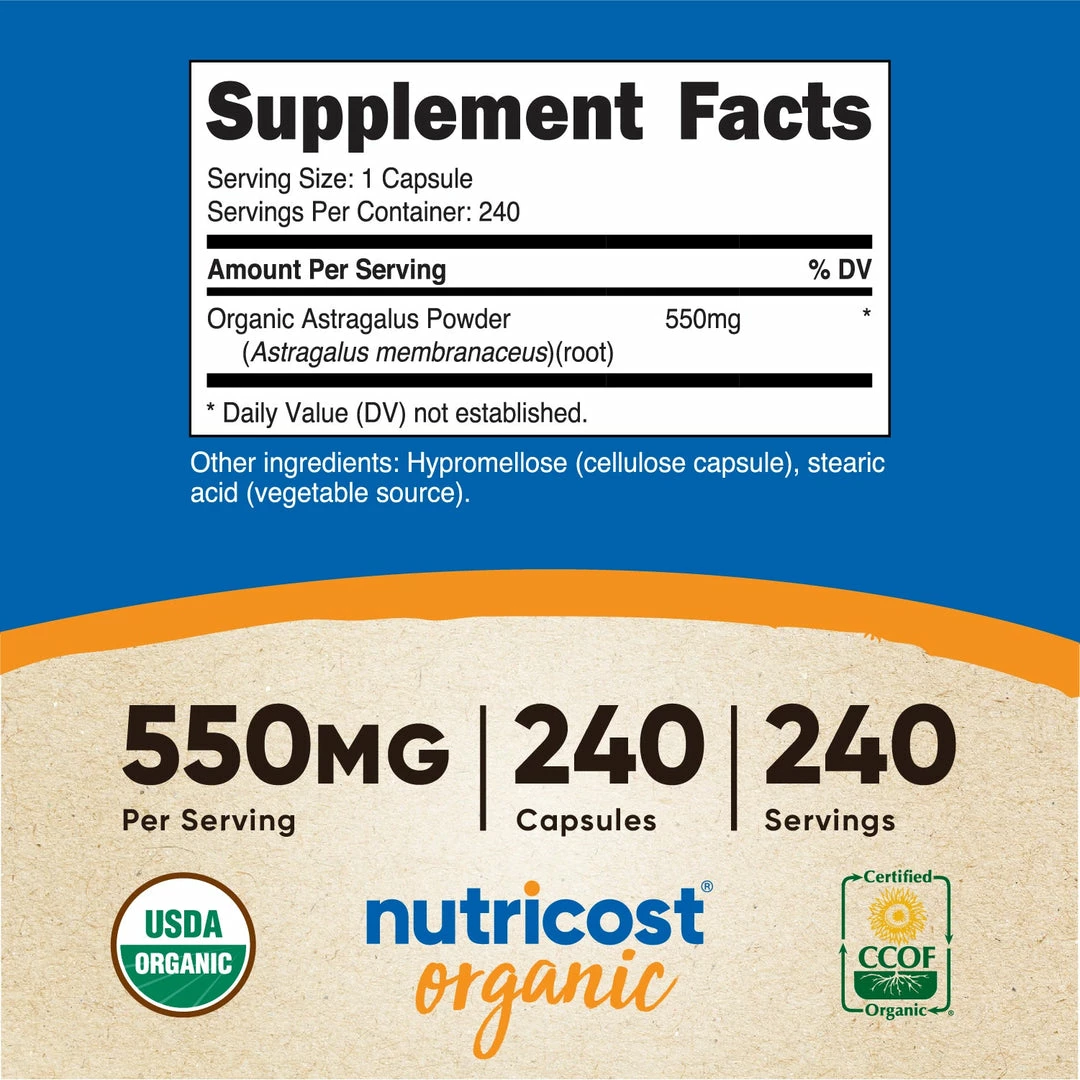 - 240 Servings of Astragalus Per Bottle