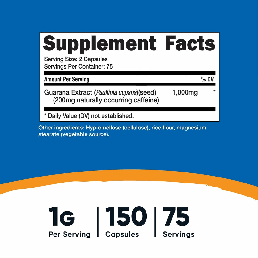 - 75 Servings of High Quality Guarana Per BottleΒ