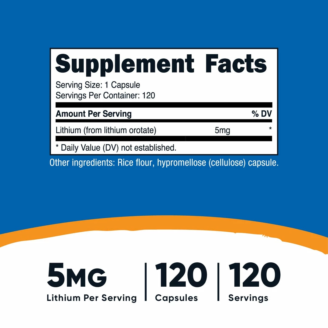 - 5mg of Lithium (from Lithium Orotate) Per Serving