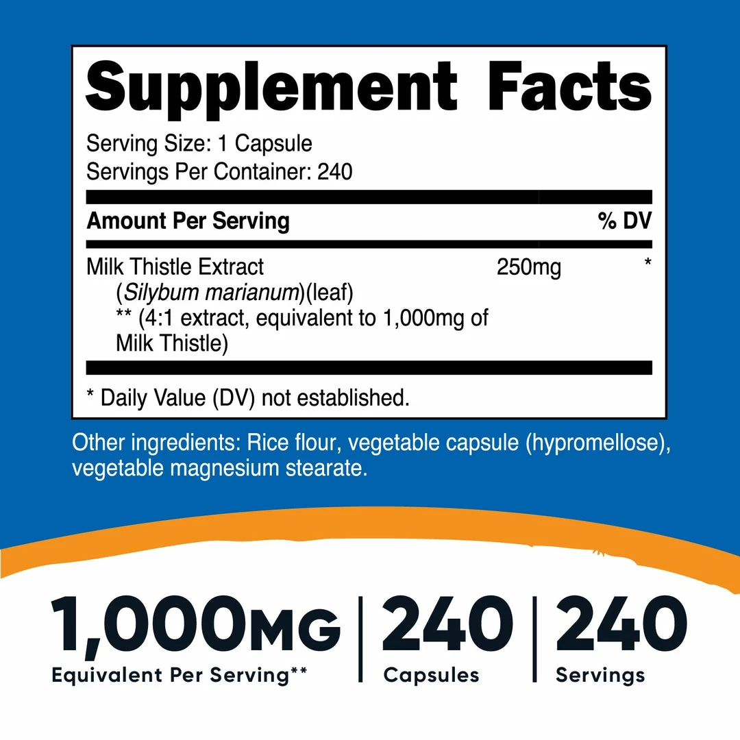 - 6 Month Supply of 4:1 Milk Thistle – 240 Vegetarian Capsules Per Bottle
