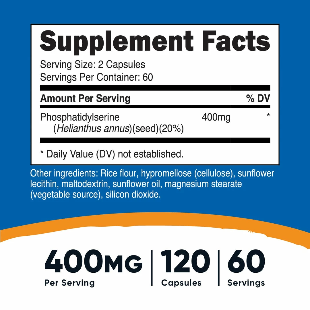 - 120 Phosphatidylserine Capsules Per Bottles