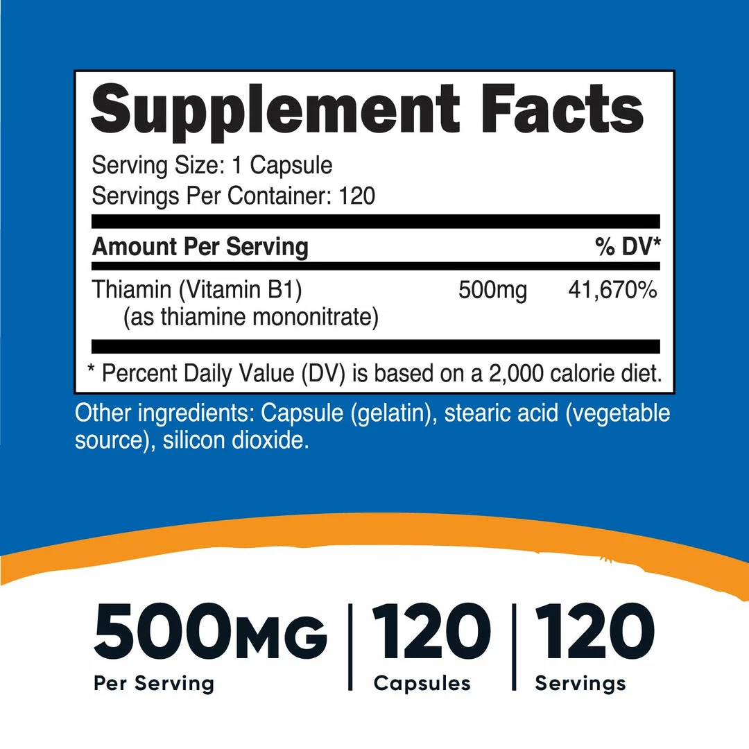 - 100 or 500mg of Vitamin B1 in Every Capsule