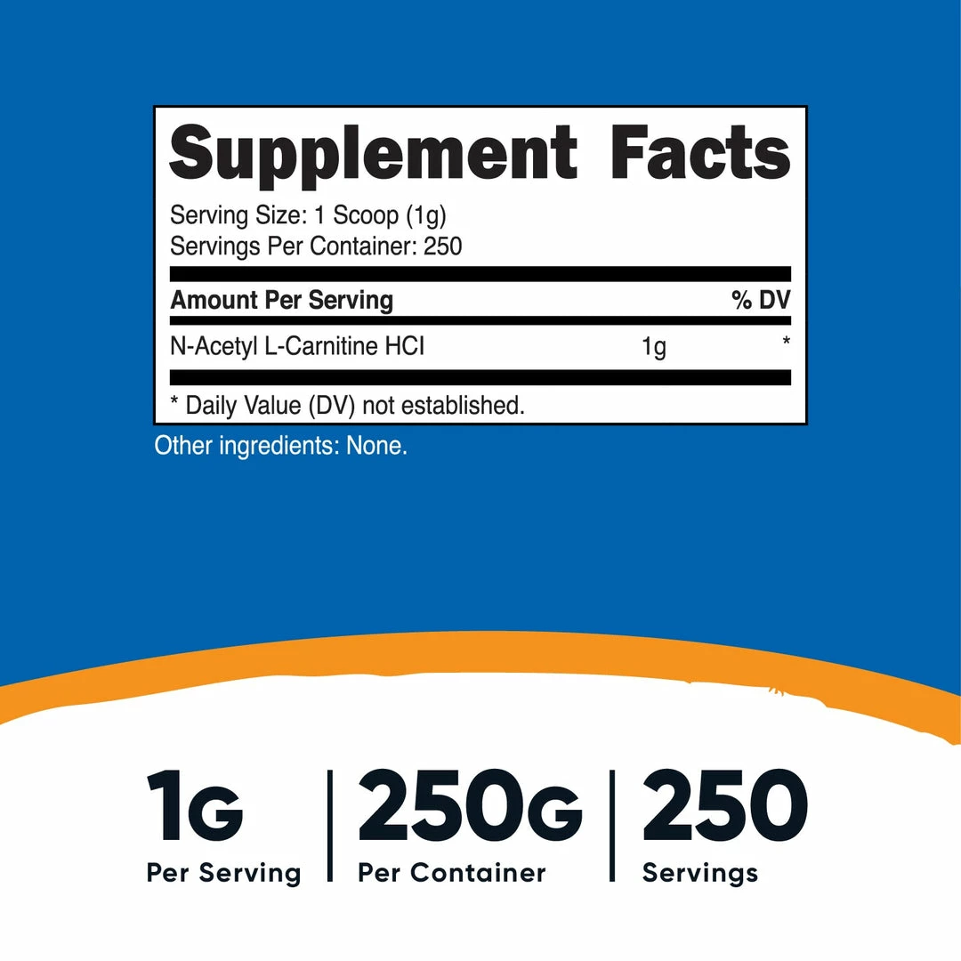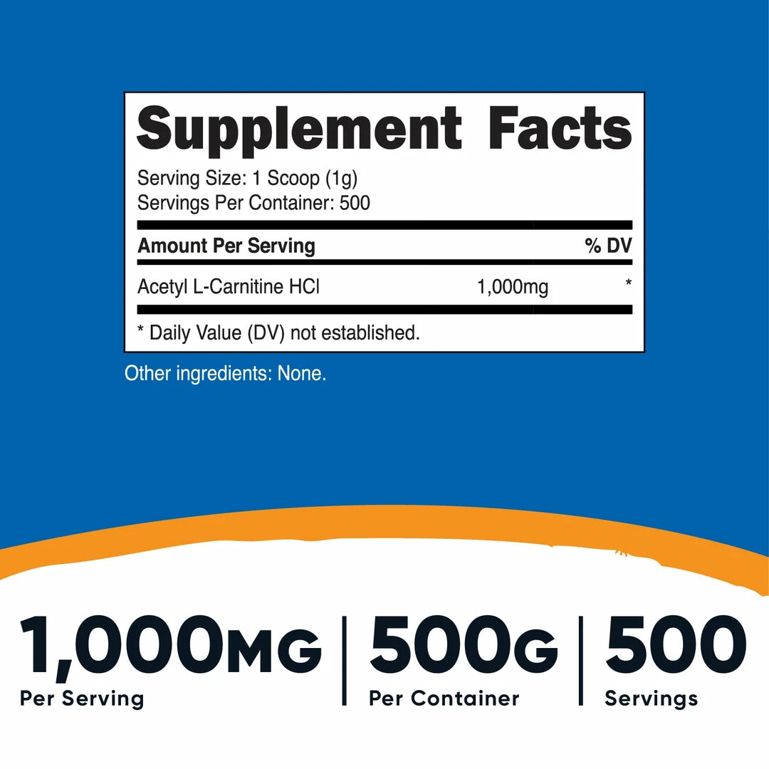 - 100, 250, or 500 Grams of Acetyl L-Carnitine Per BottleΒ