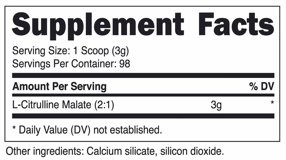 - 3 Grams of L-Citrulline Malate Per Serving (98 Servings)