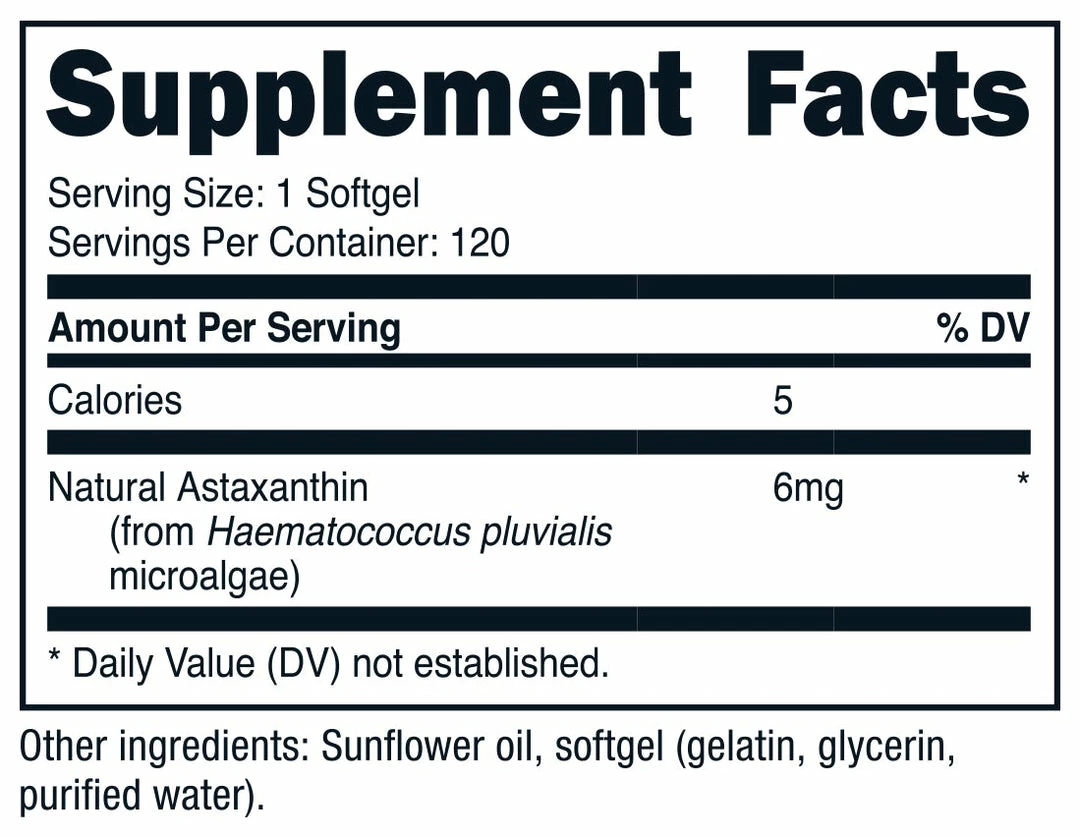 - or 4mg or 6mg of Astaxanthin per Softgel with 120 Softgels