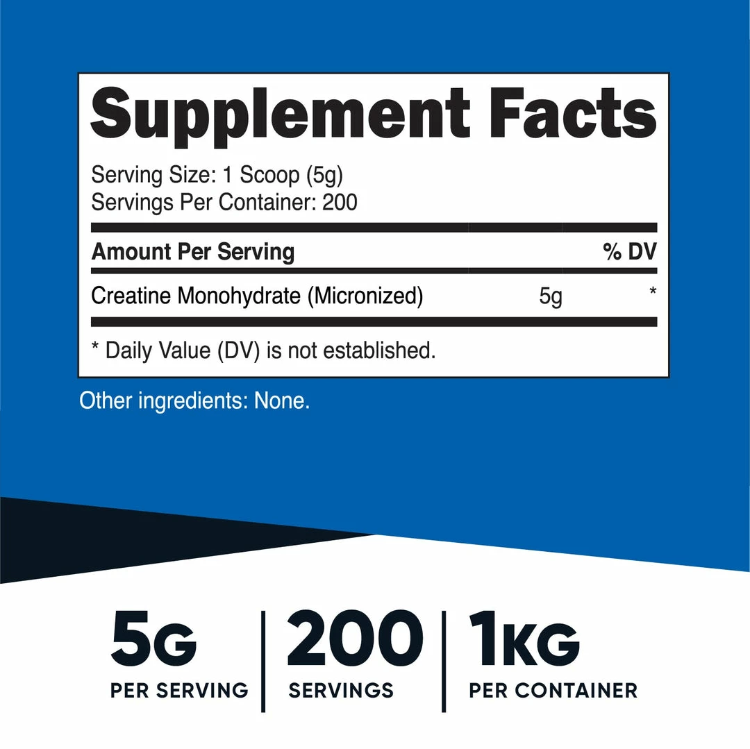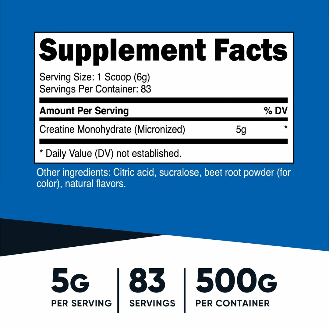 - 500 Grams or 1 KG of Creatine Monohydrate Per Bottle
