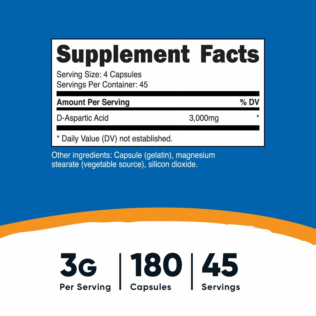 - 3000mg of D-Aspartic Acid Per Serving (750mg Per Capsule)