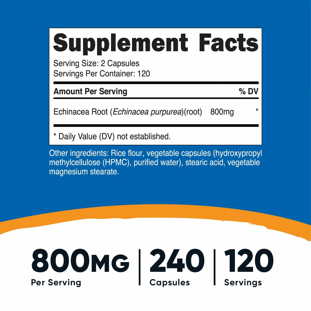 - 800mg of Echinacea Per Serving (400mg Per Capsule)