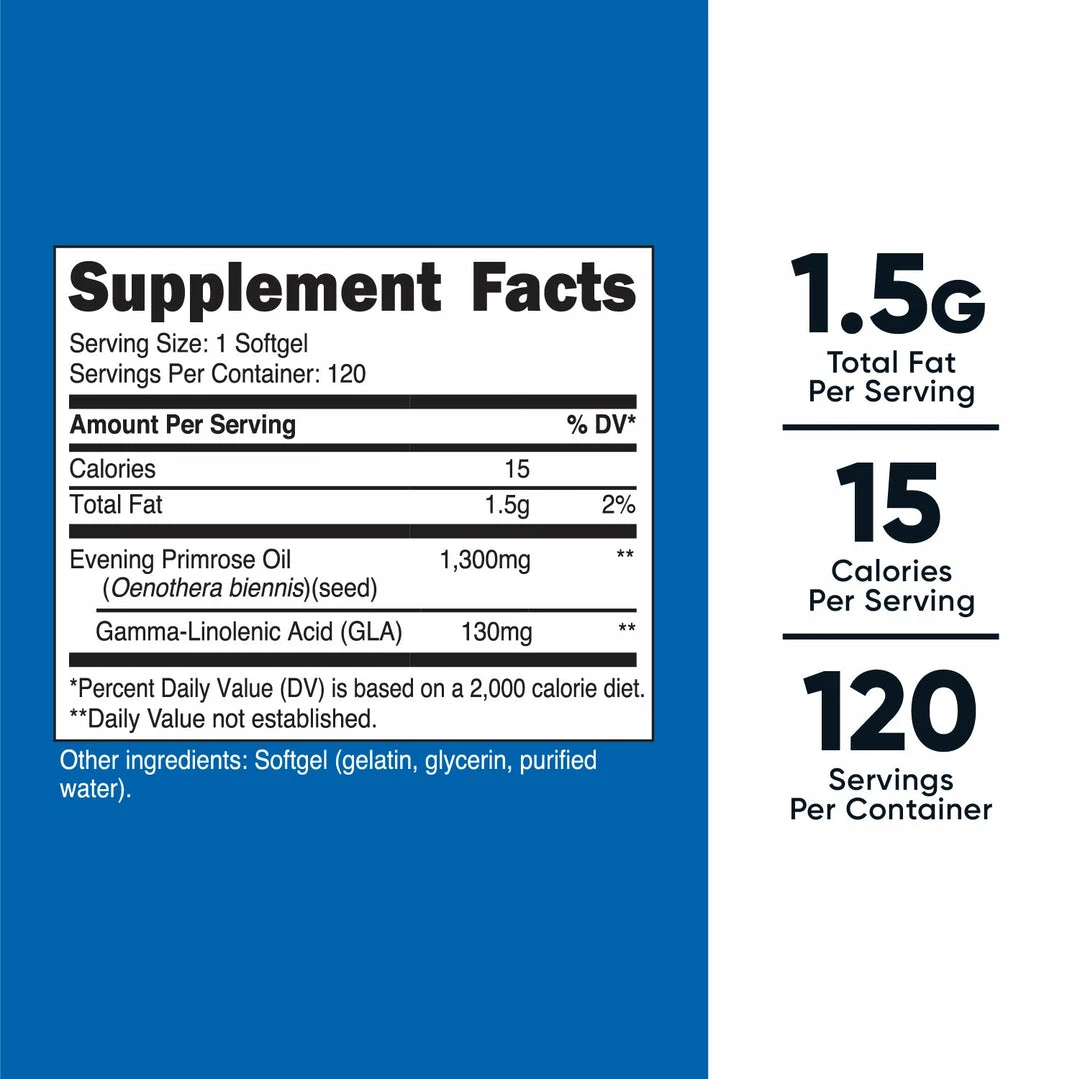 - 1300mg of Evening Primrose Oil Per Serving (120 Servings)
