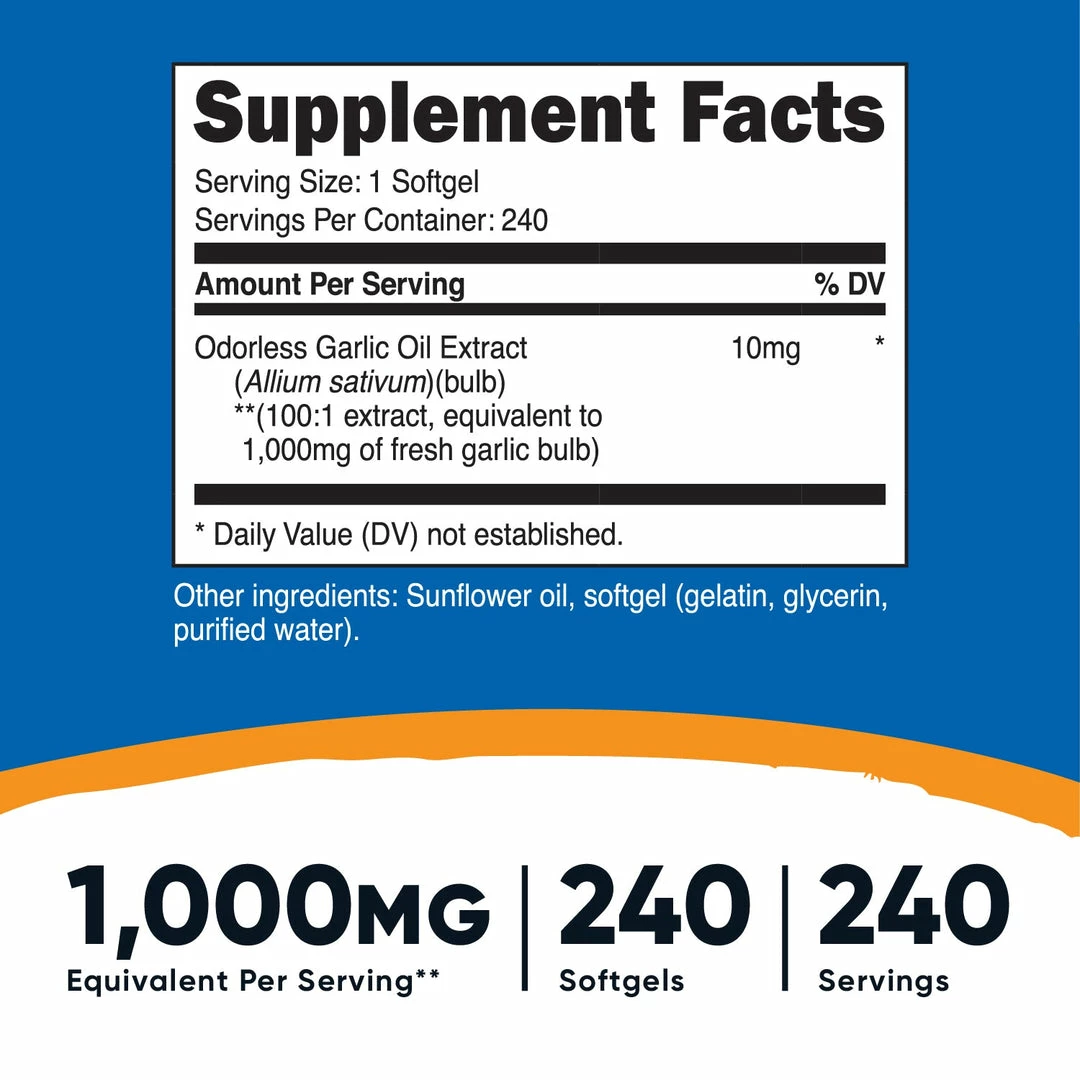 - 1,000mg equivalent of Garlic Per Softgel (100:1 extract)