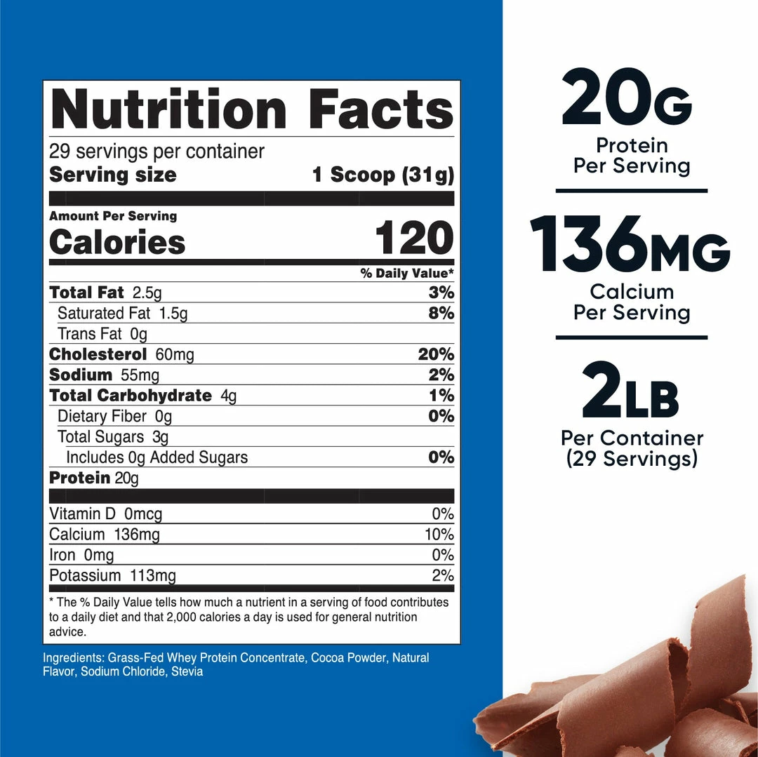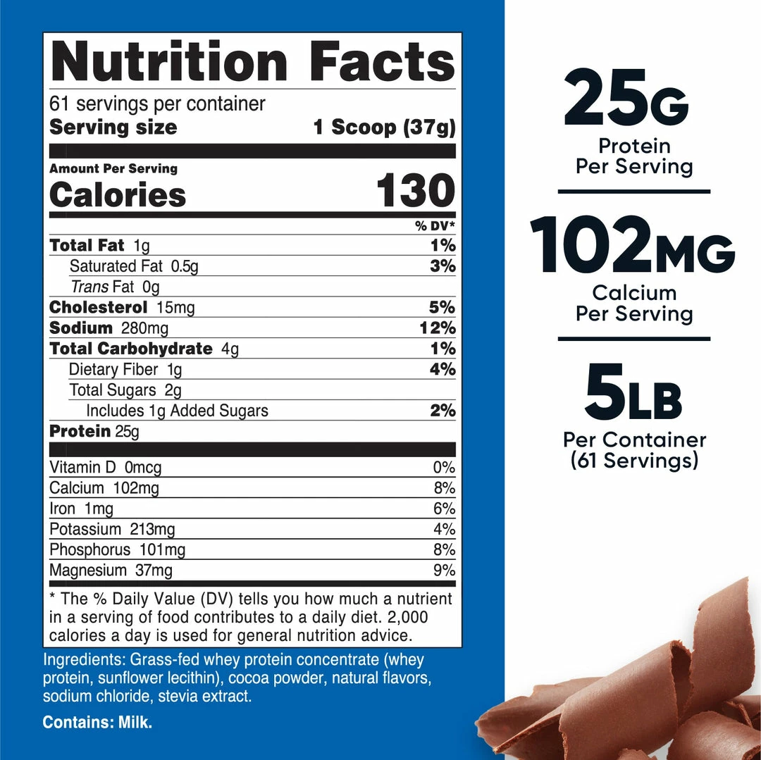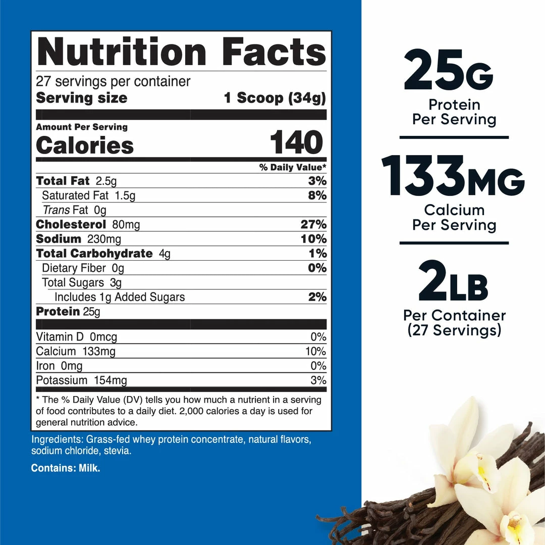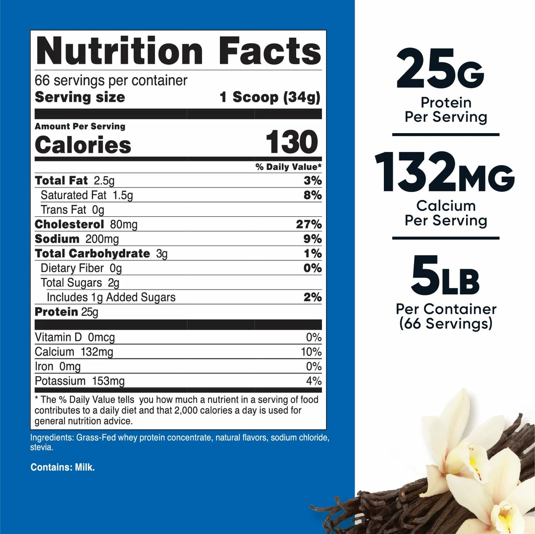 - 2 or 5 lbs of Grass Fed Whey Protein Concentrate Per Bottle