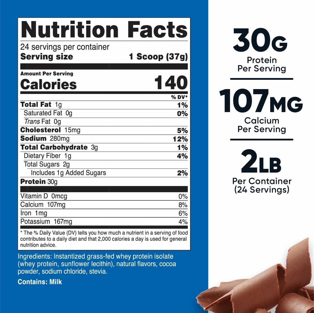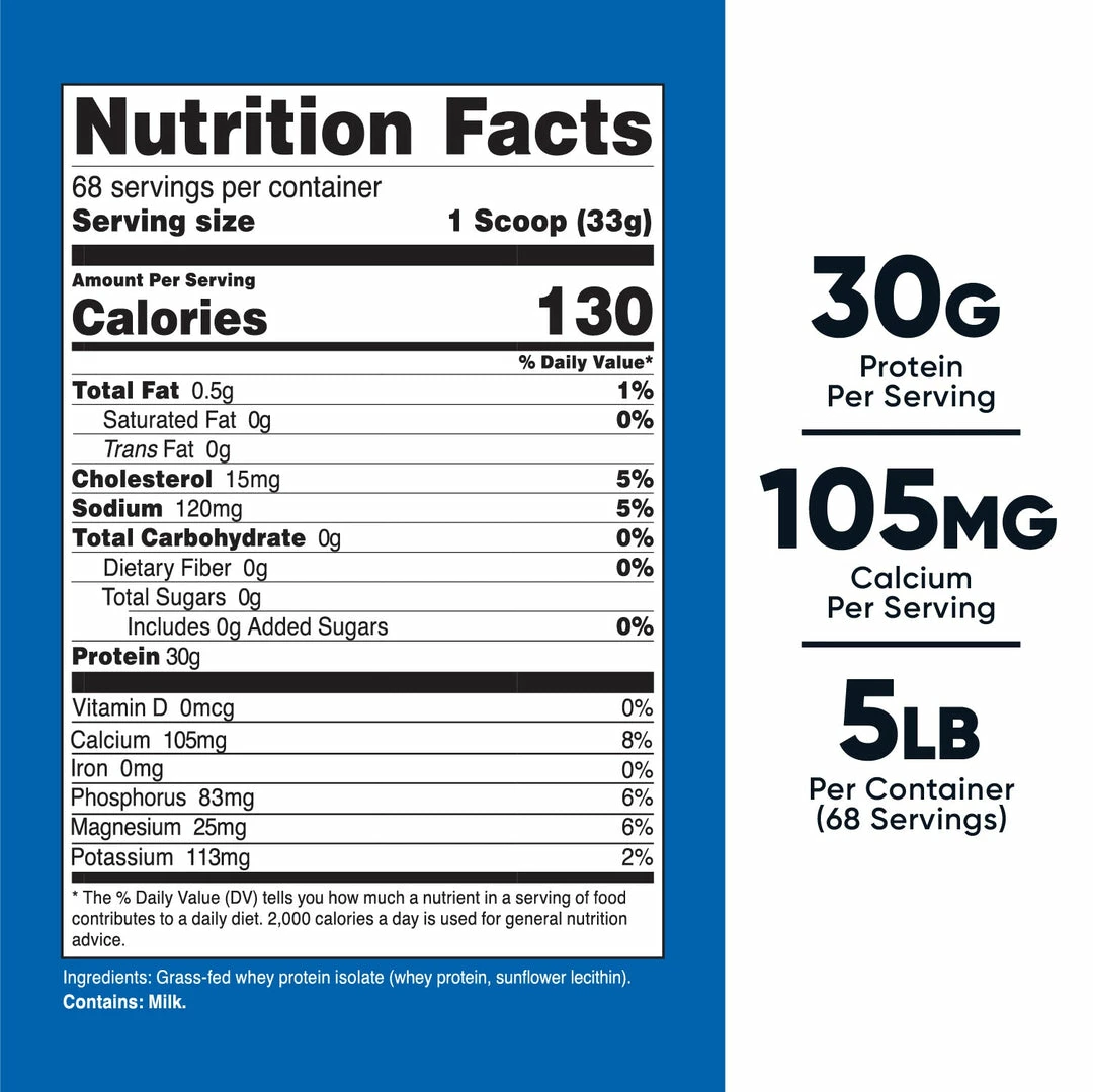 - 19 Grams of Grass-Fed Whey Protein Isolate Per Serving