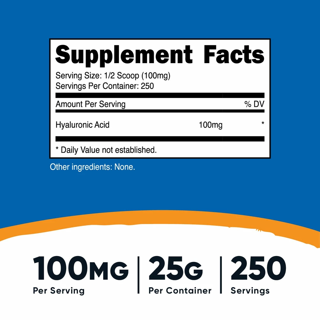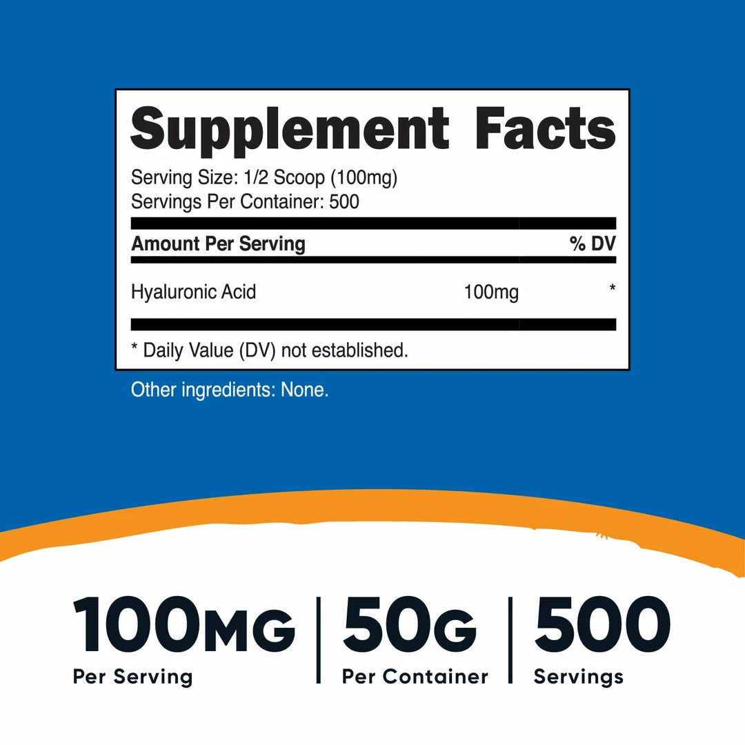 - 25 or 50 Grams of Hyaluronic Acid Per Bottle
