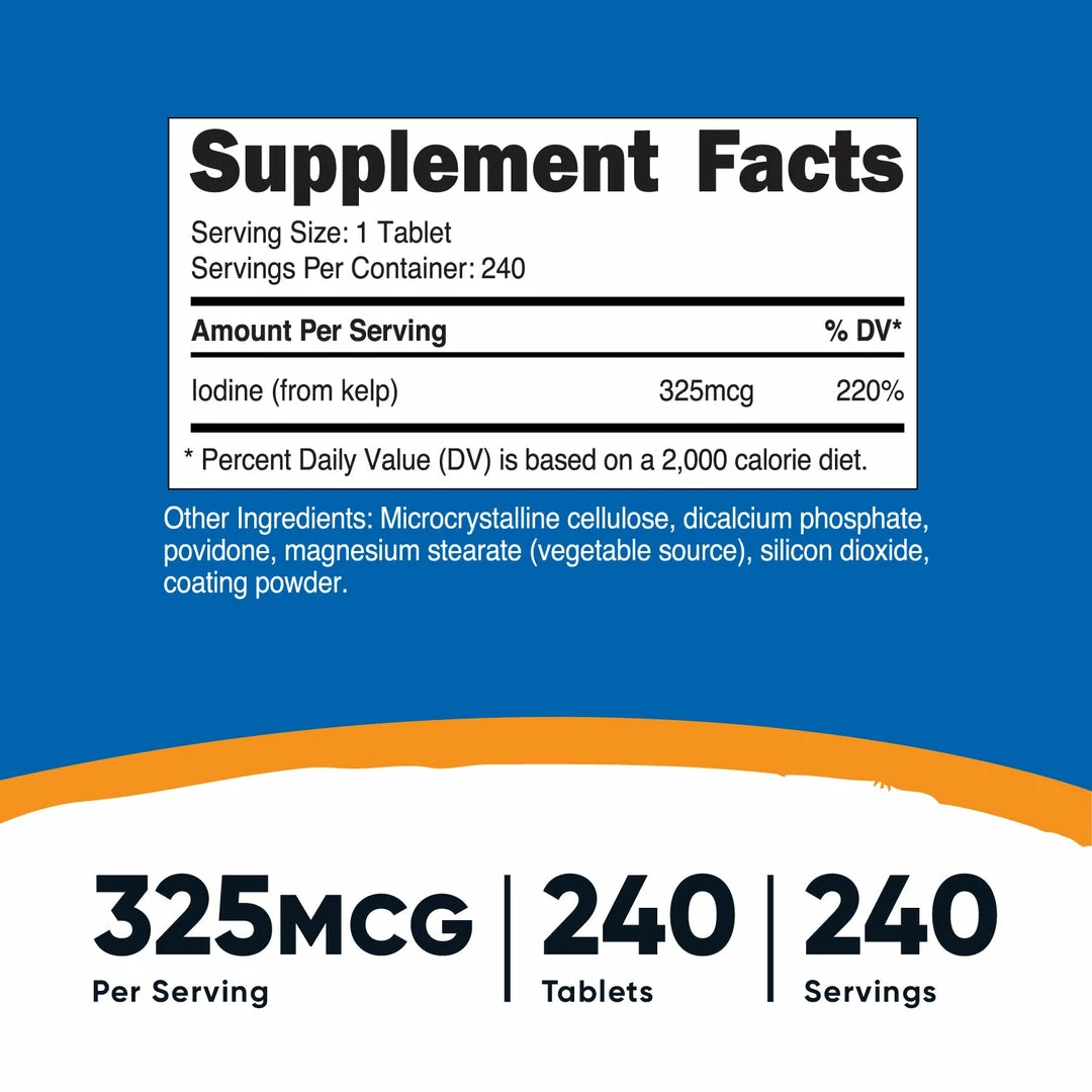 - 325mcg Of Iodine (From Sea Kelp) In Each Tablet