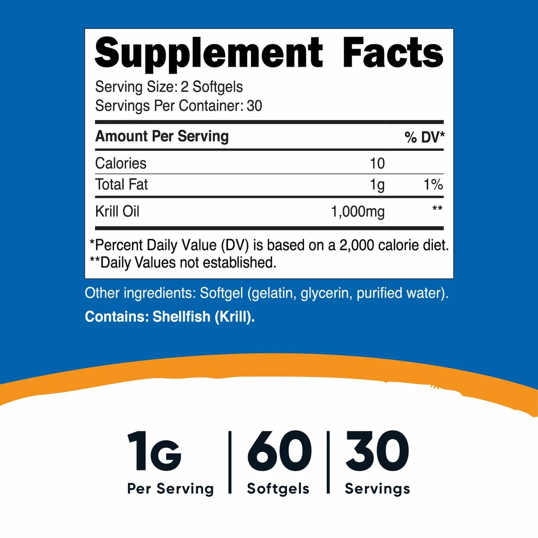 - High Potency Krill Oil Capsules: 1000mg Per Serving