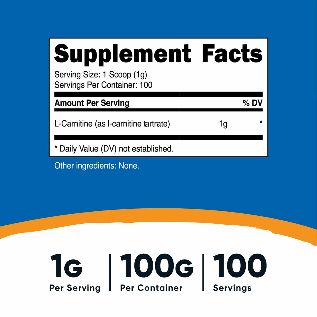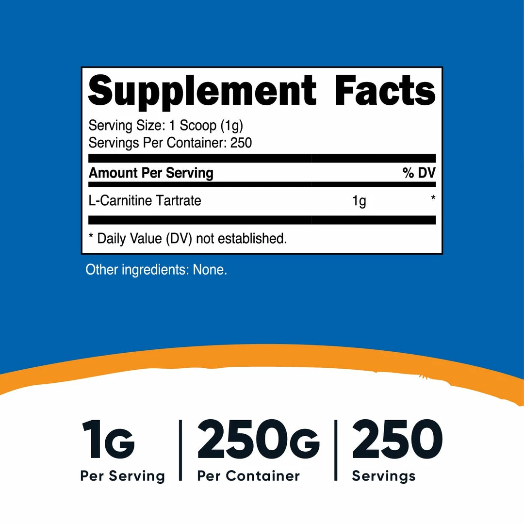 - 100 or 250 Grams of L-Carnitine Tartrate Powder Per Bottle