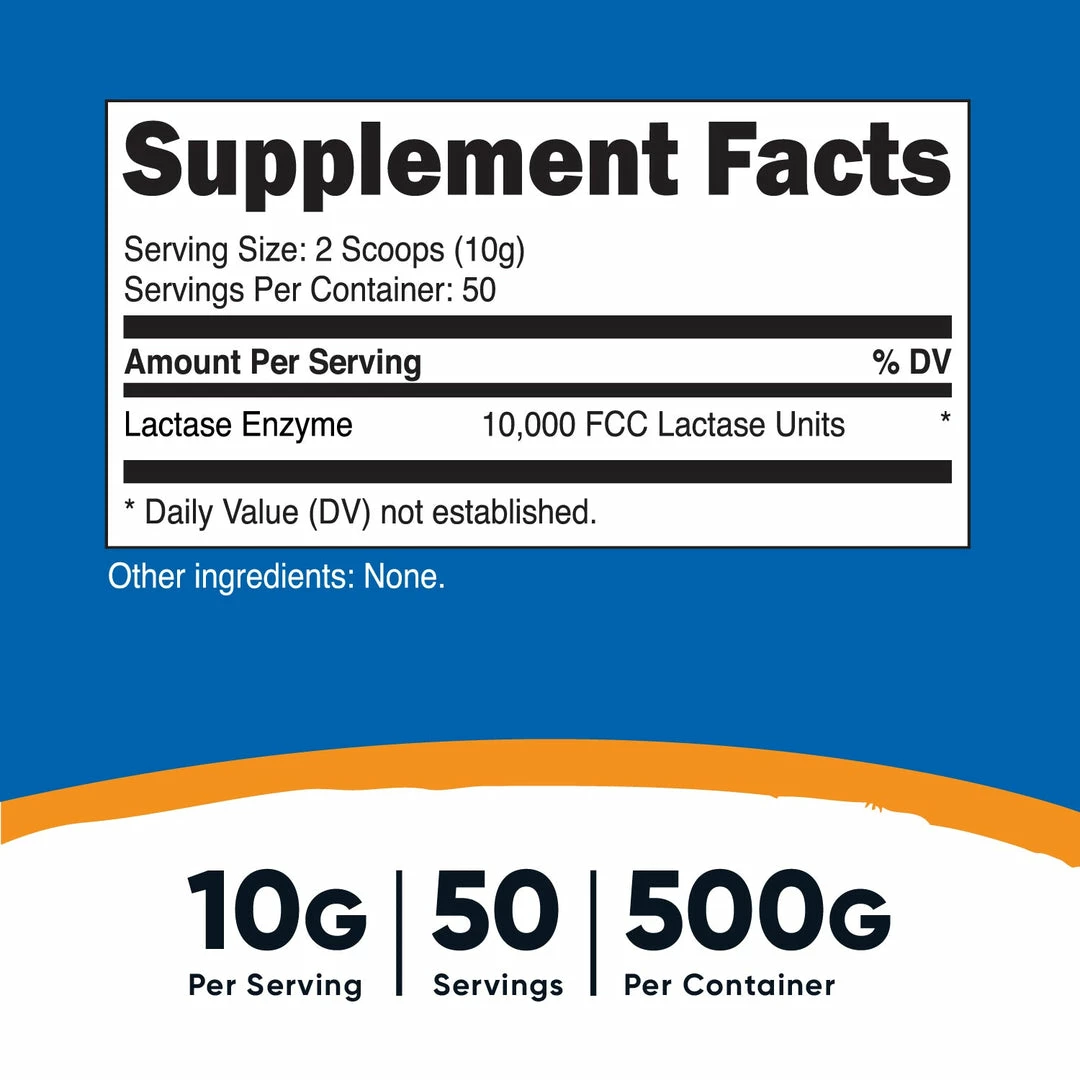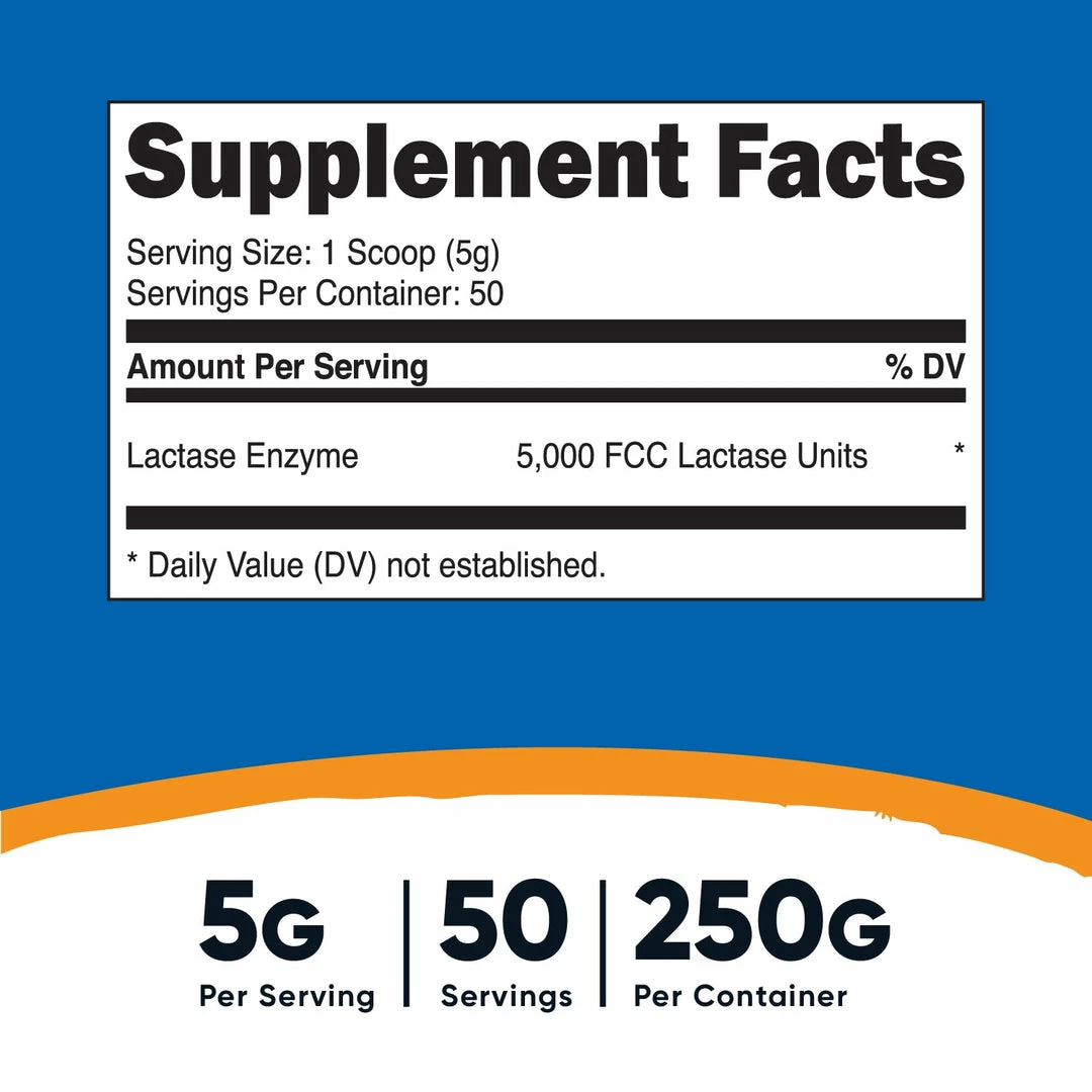- 250 and 500 Grams of Lactase Powder Per Bottle