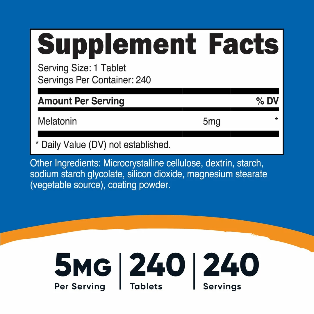 - 3mg, 5mg, 10mg,Β orΒ 12mg of Melatonin Per Serving (240 Servings)