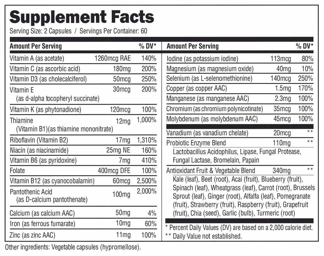 - 1300mg of Vitamins and Minerals Per Serving (60 Servings)
