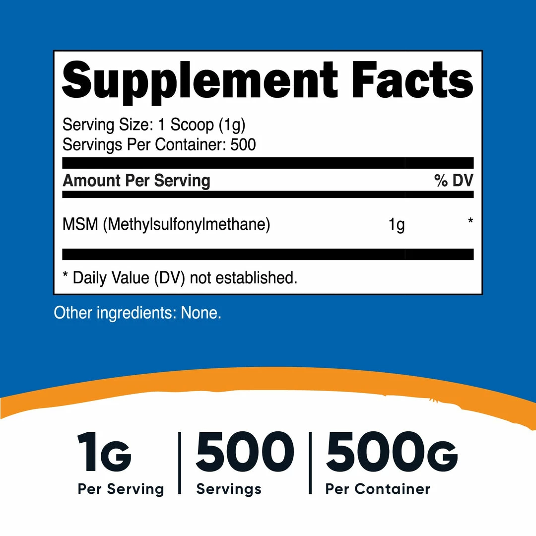 - 1 Gram of MSM Powder Per Serving (500 Servings)