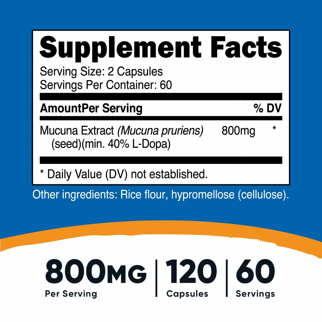 - 400mg of Mucuna Pruriens Per Capsule, 800mg in Every Serving