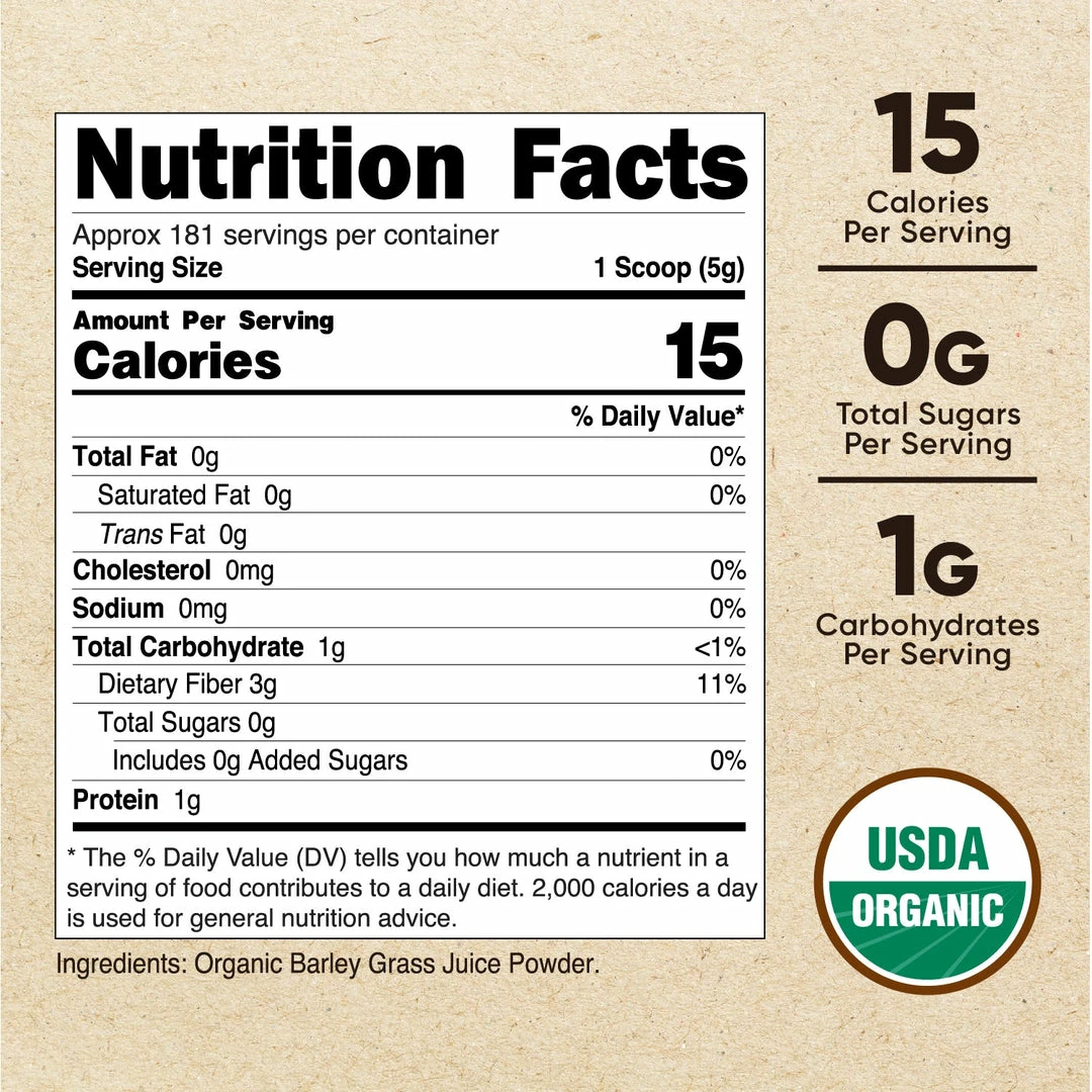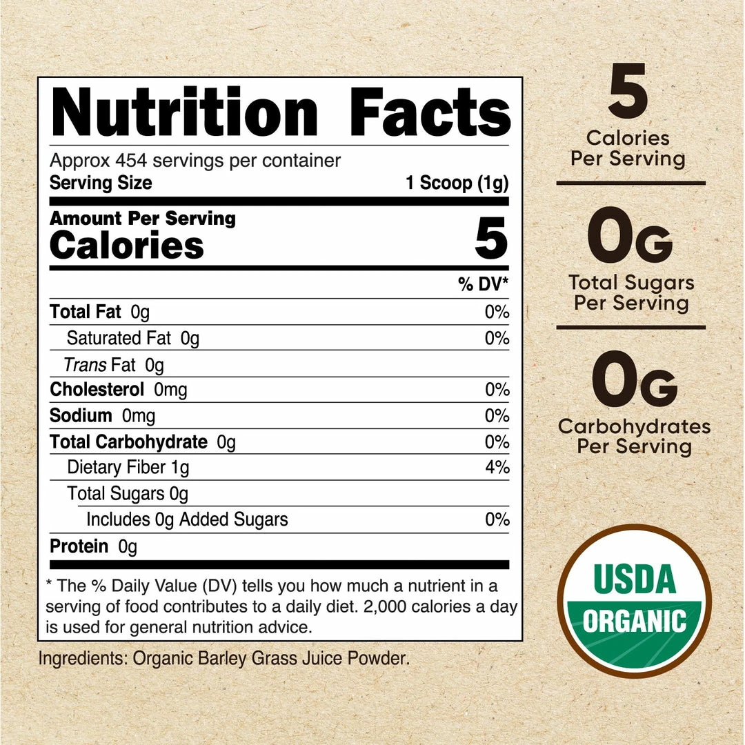 1lb & 2lb options of Organic Barley Grass Juice Powder Per Bottle
