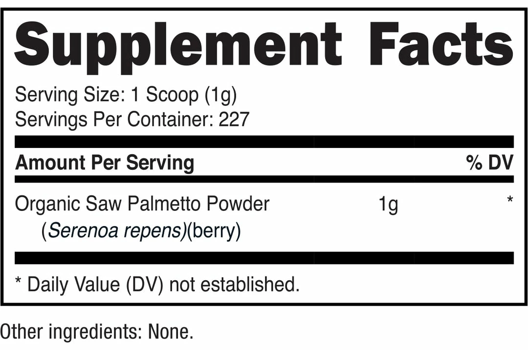 - 8 oz (227 grams) of Organic Saw Palmetto Powder Per Bottle