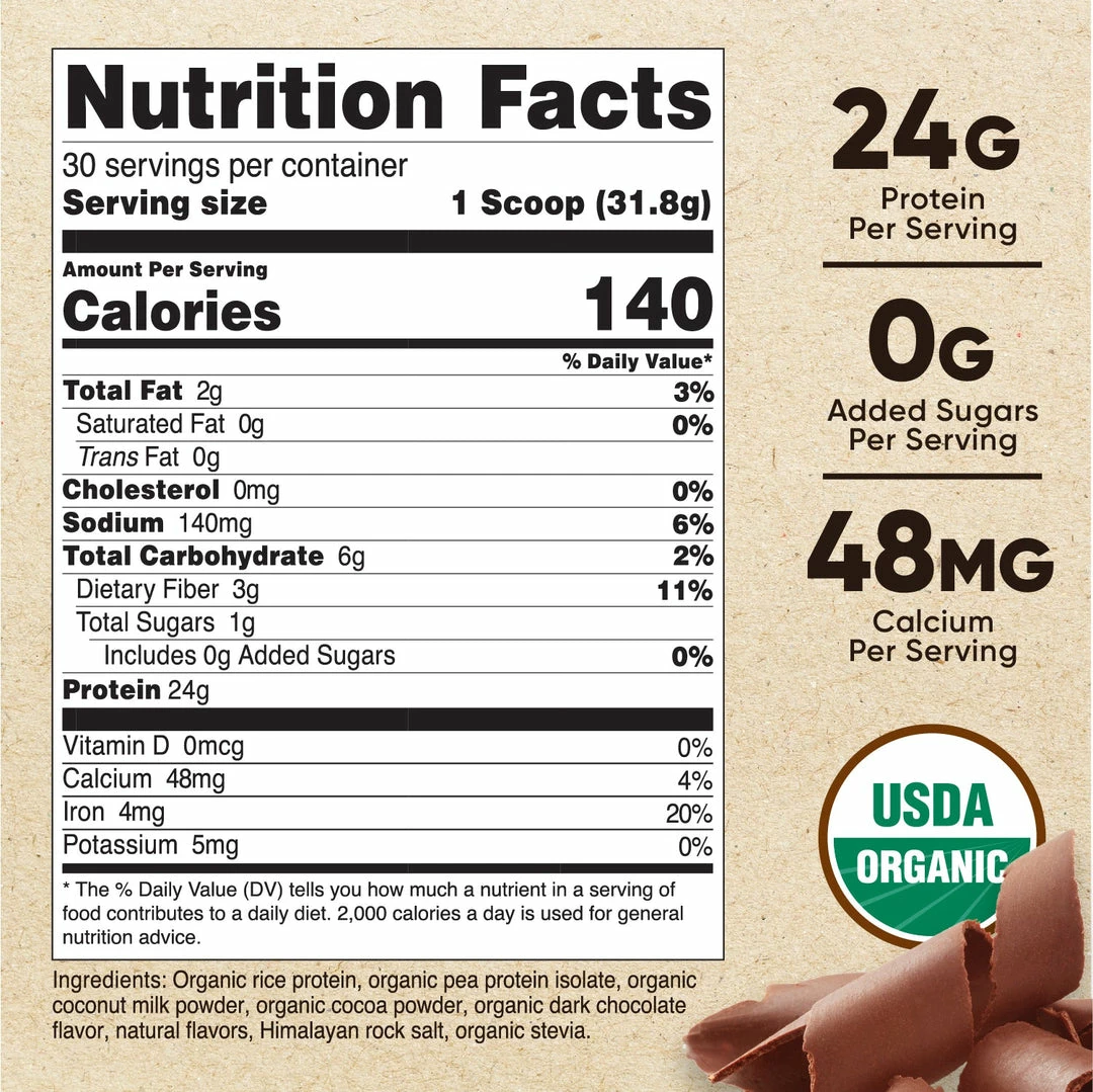 - Chocolate or Vanilla Flavored, Vegan-Friendly Plant-Based Protein