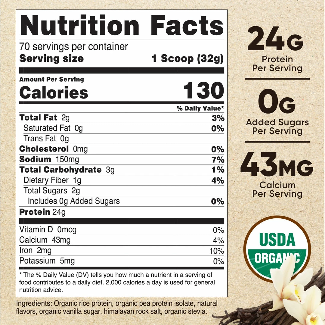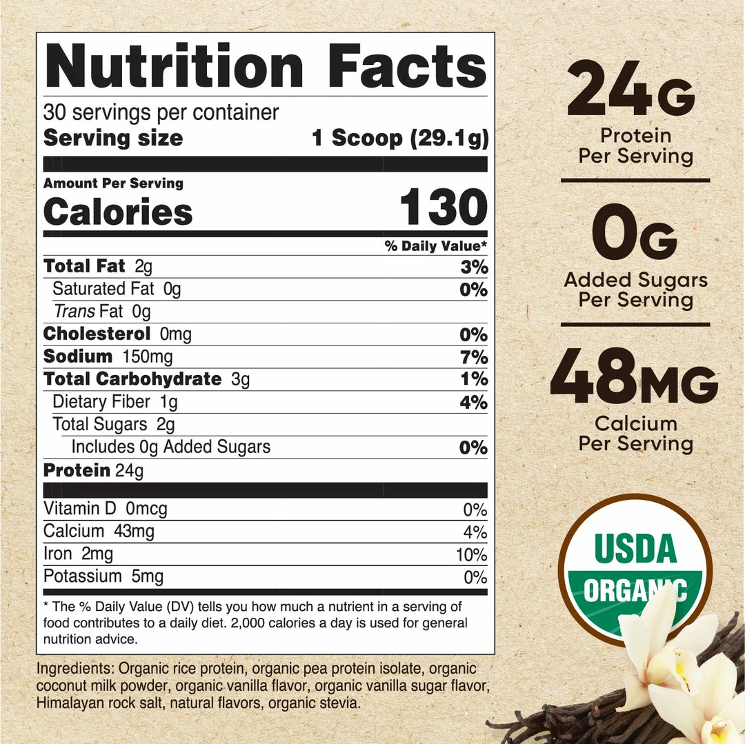 - CCOF Certified USDA Organic Plant-Based Vegan Protein Powder