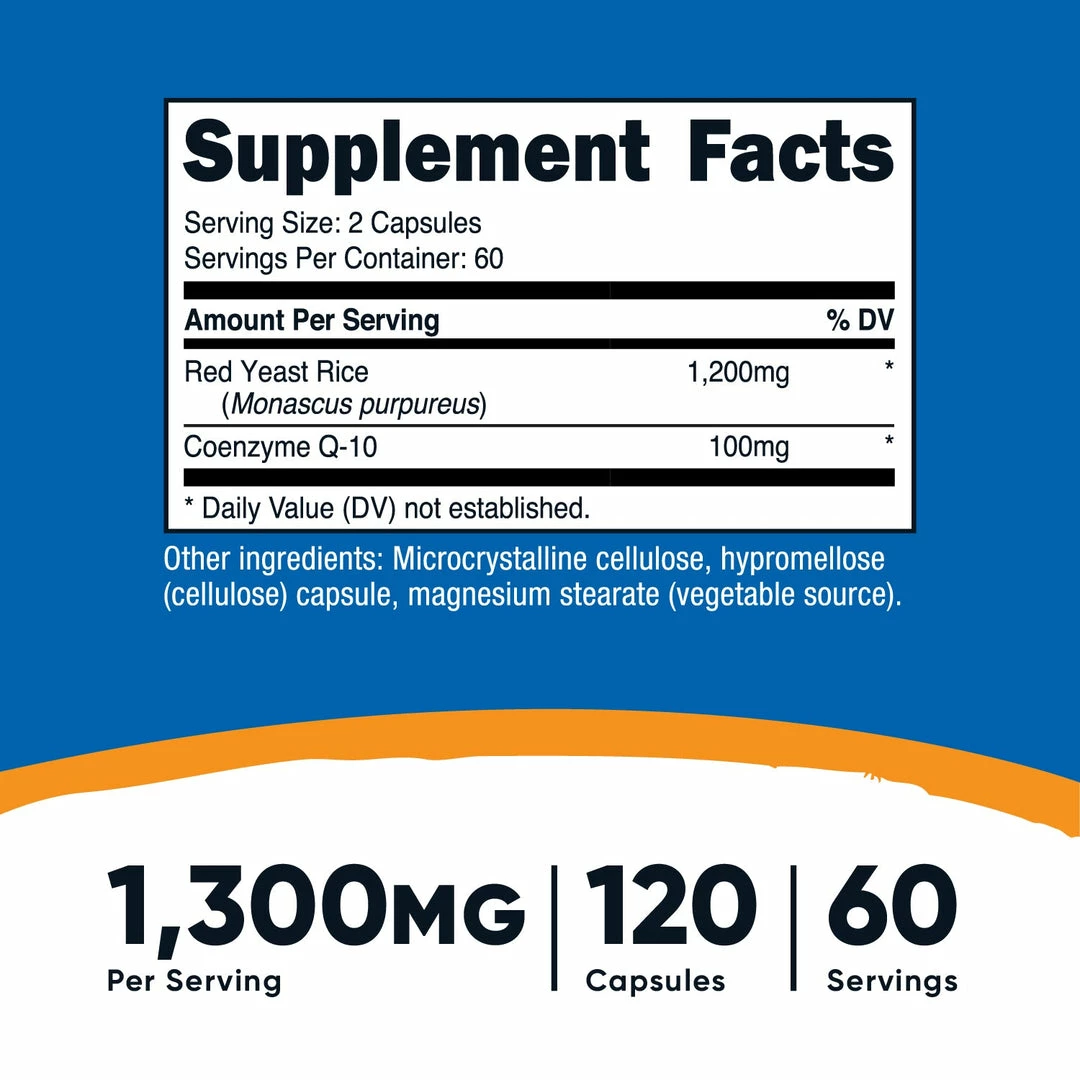 - 1200mg of Red Yeast Rice Per Serving