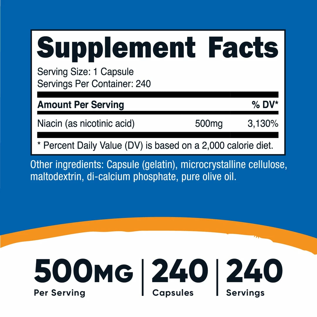 - Potent 500mg of Niacin (Vitamin B3) Per Capsule