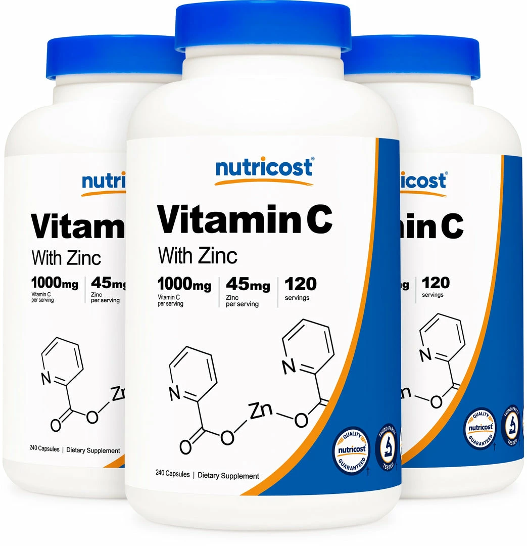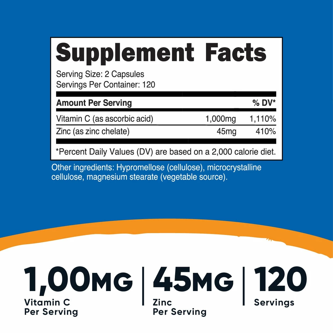 Nutricost Vitamin C with Zinc delivers 1000mg of Vitamin C and 45mg of Zinc per serving.Β