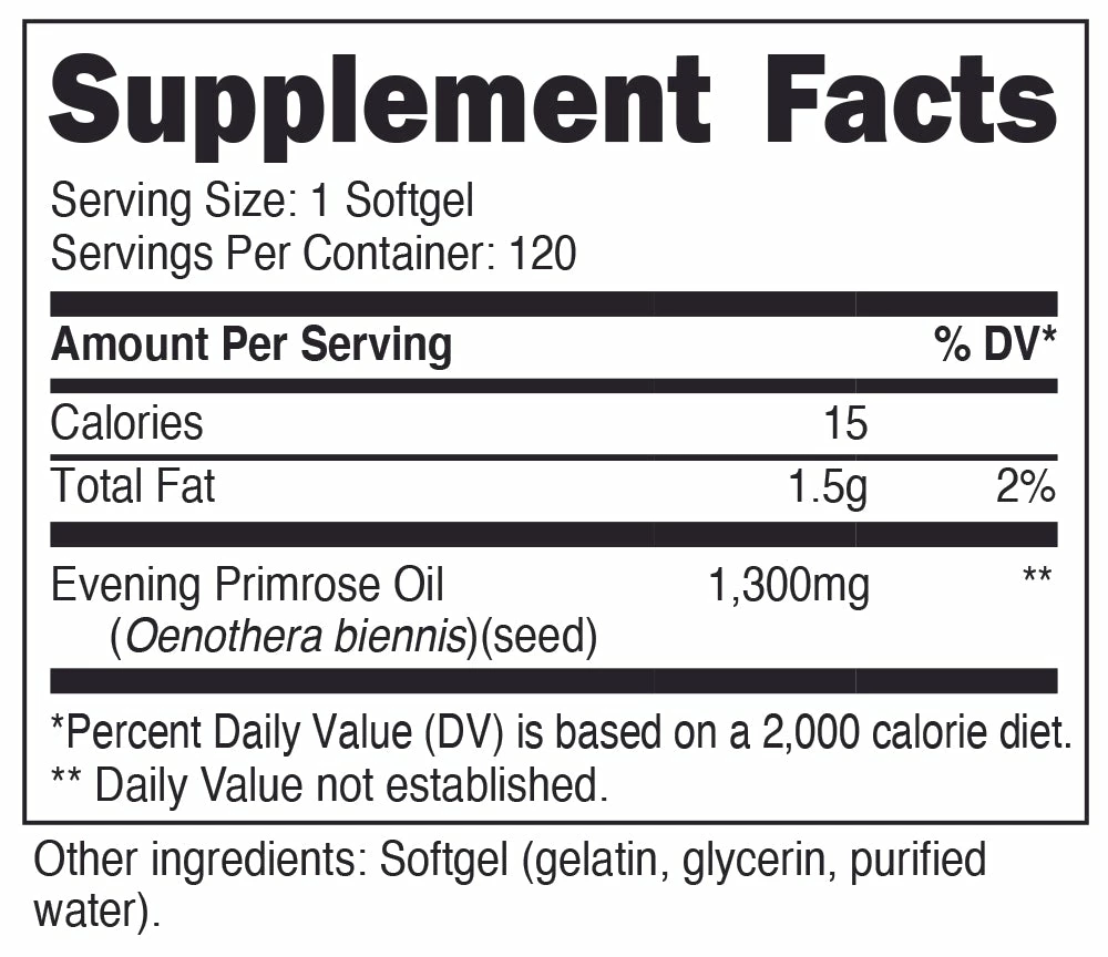 - 1300mg of Evening Primrose Oil Per Serving (120 Servings)
