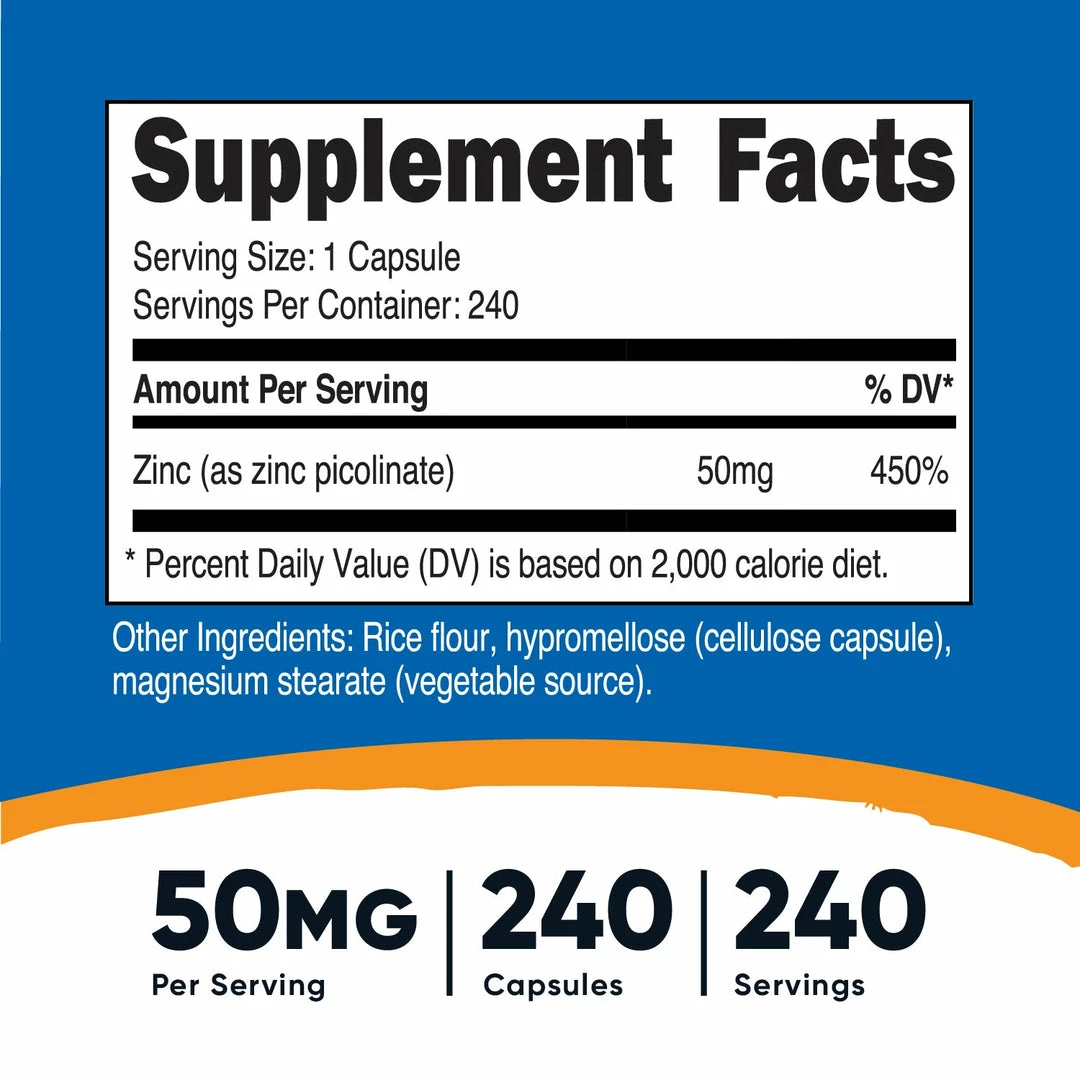 - 50 mg of Zinc (from Zinc Picolinate) Per Serving